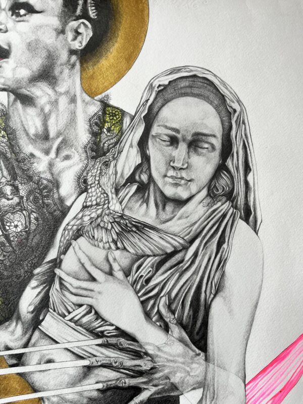2025 • 70 x 62 cm • Bleistift, Graphit, Buntstift, Acryl auf Papier.