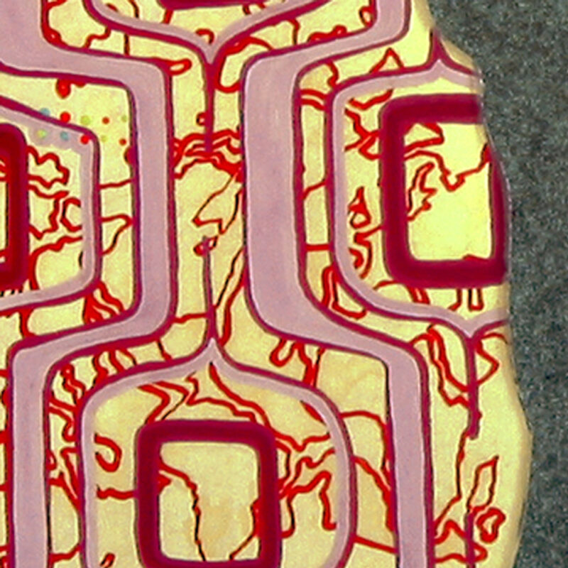2002 • 200 x 180 cm • Mixed-Media, verschiedene Materialien und Techniken – Acrylfarben, Collage, Fundstücke, Stoffe, Zeichnung, Baumaterialien, Malerei.