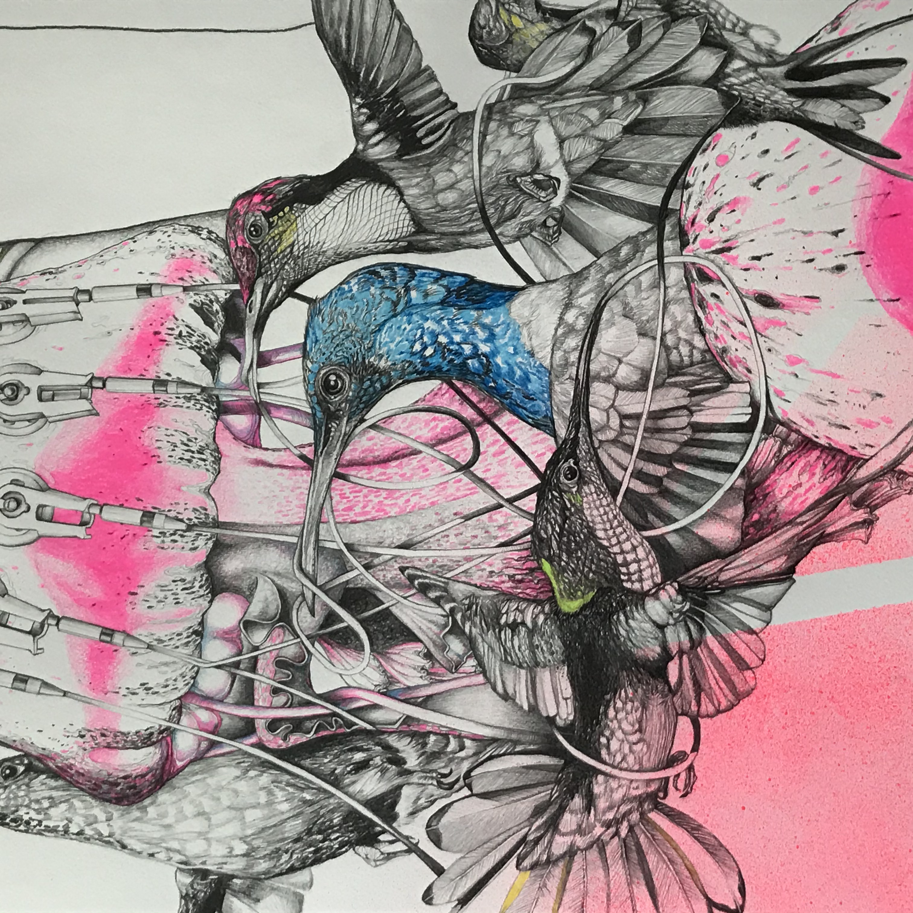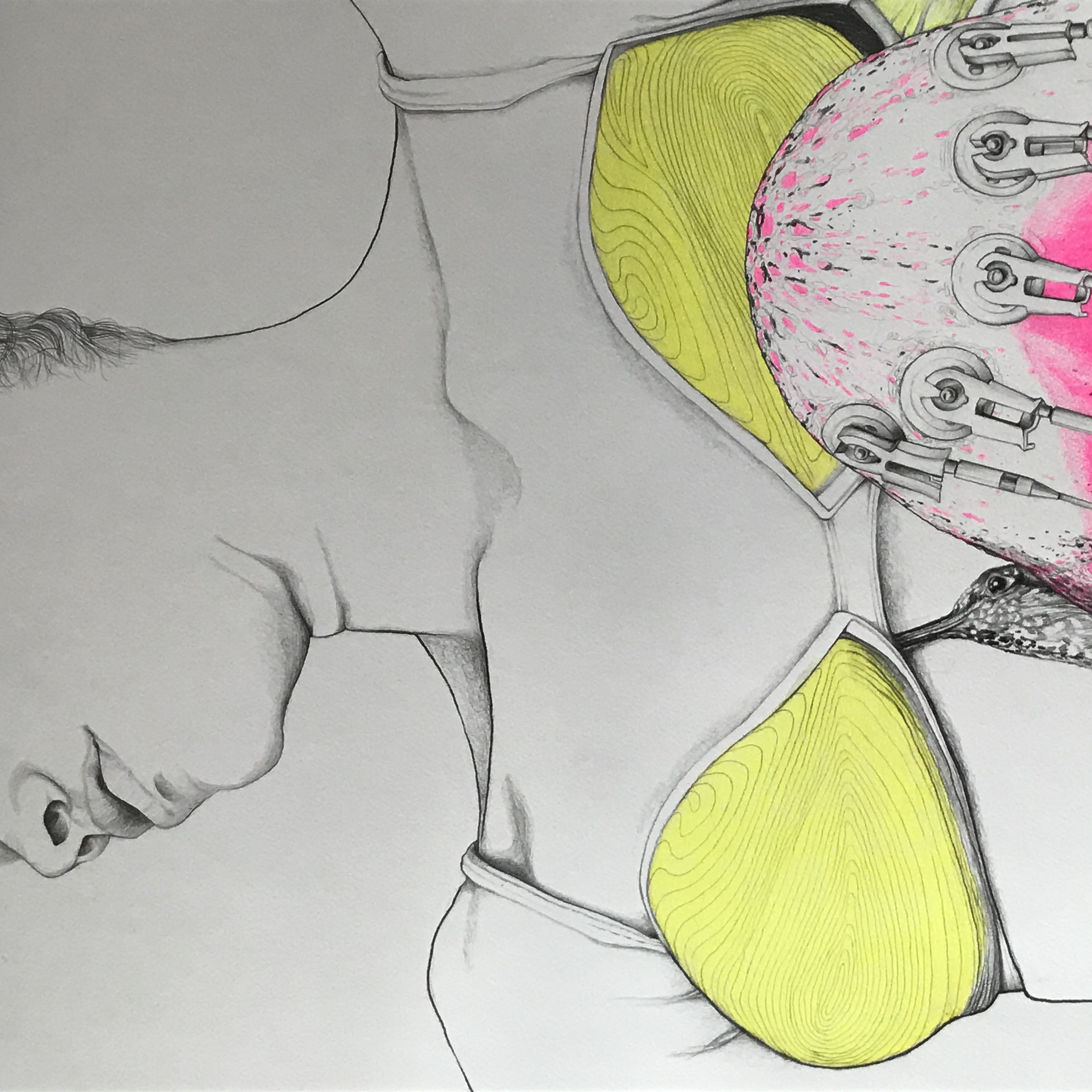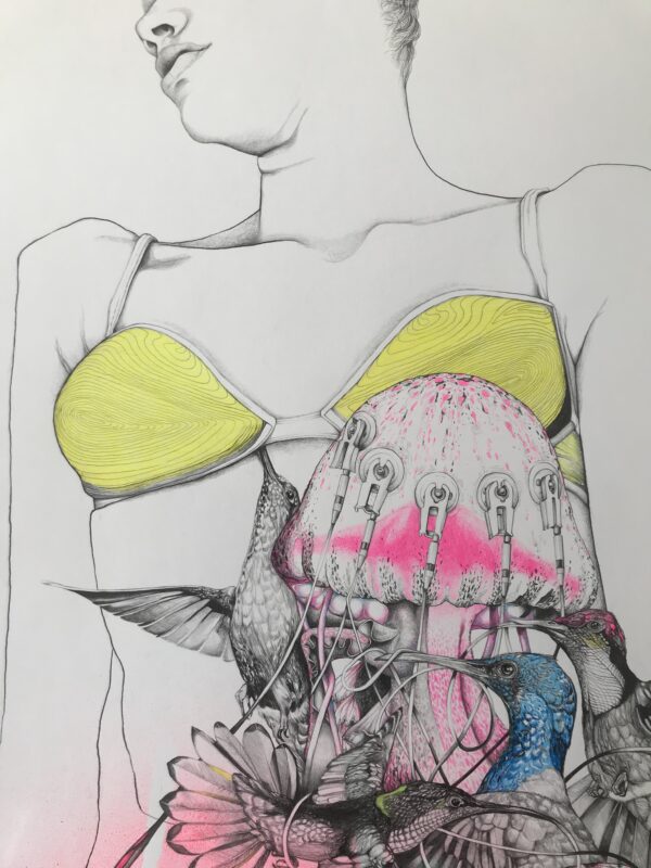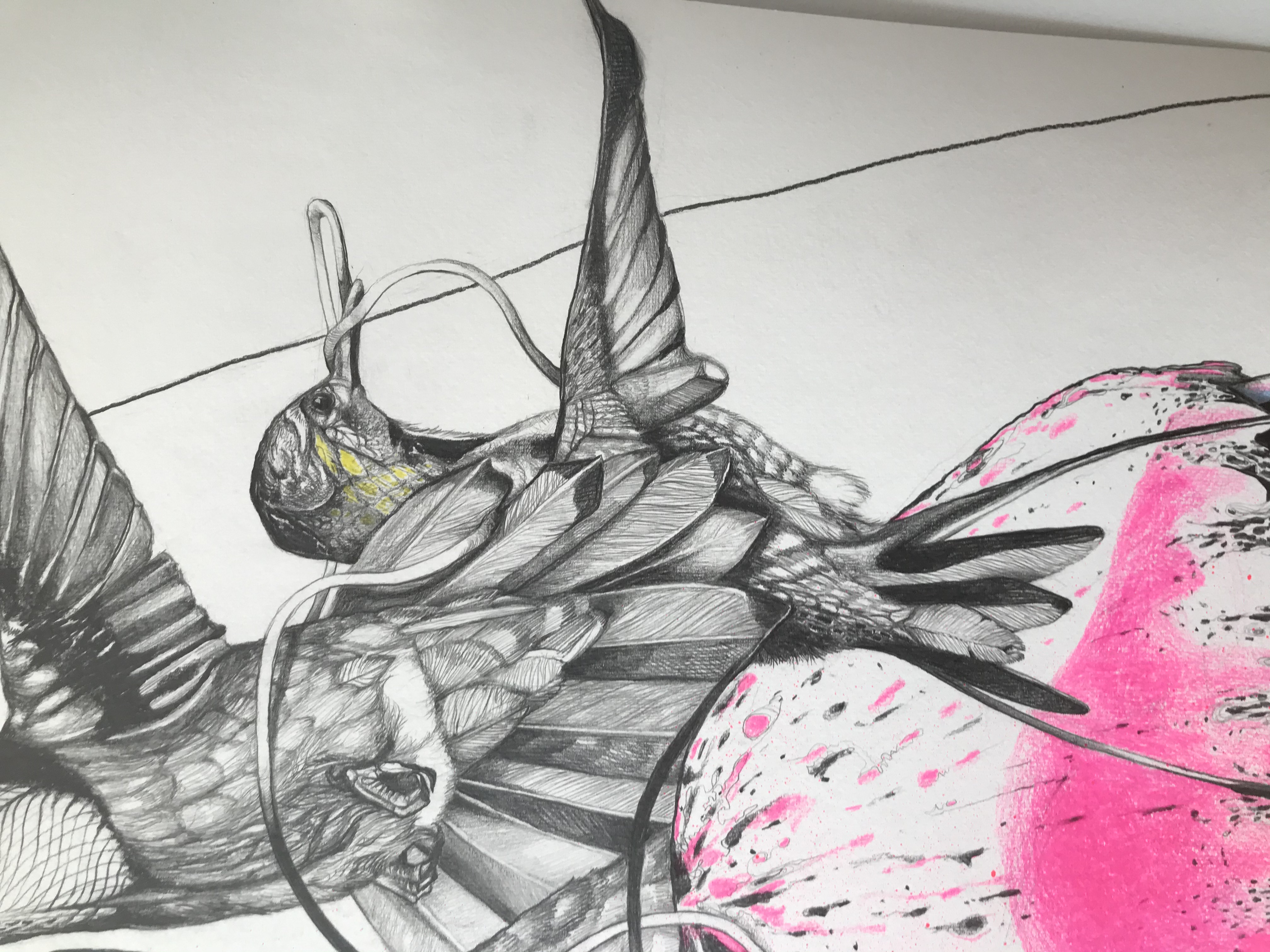 2020 • 150 x 110 cm • Lackspray, Buntstift und Graphit auf Papier.